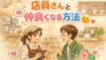 店員さんと自然に仲良くなりたい方へ。挨拶の仕方や会話のきっかけ、距離感の保ち方など、誰でも実践できる15のコツをわかりやすく解説。NG行動や注意点もあわせて紹介しています。