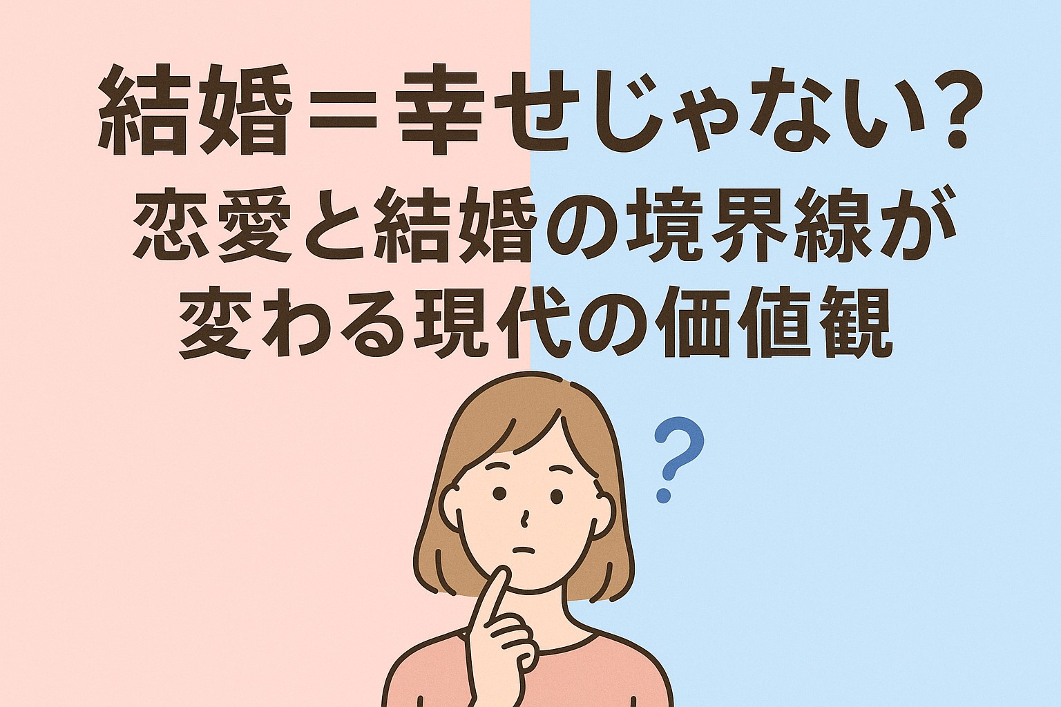 今や「結婚=人生のゴール」という考え方は、過去のものになりつつあります。恋愛と結婚は同じ線上にない、という価値観を持つ人が増えており、「恋愛はしたいけど結婚は別」「自由や自立を大切にしたい」「キャリアや趣味を優先したい」といった多様な生き方が選ばれるようになっています🌱